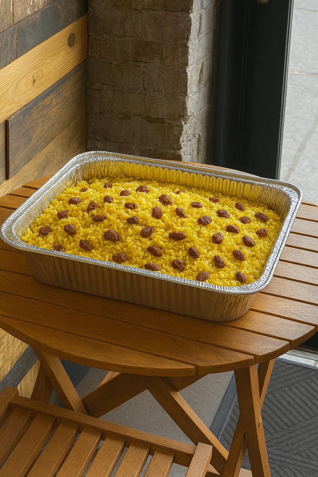 Guyanese raisins rice—lightly sweet, fragrant, and balanced with a savory edge. Fluffy grains studded with raisins, made to sit beside bold curries and stews. Comforting, never cloying, built for full plates and second helpings. Catering available in Small Pan or Large Pan.